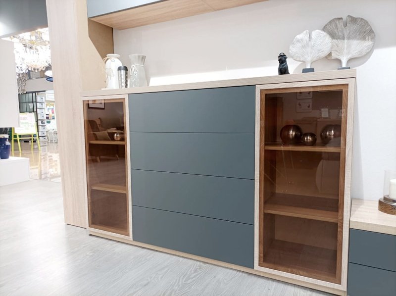 - 3 секции, включая 2 шкафа с полками и выдвижные ящики.