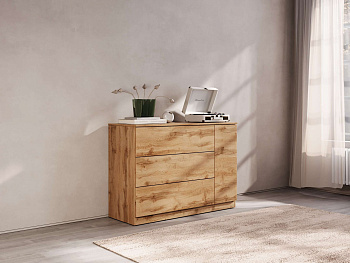 Комод Бьёрн — это умное хранение там, где нет места для большого шкафа. Три глубоких ящика вместят весь домашний текстиль, а скрытое отделение с полками идеально для тех вещей, которые хочется спрятать с глаз долой. Больше не нужно выбирать между удобством и свободным пространством.