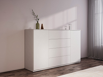 Когда вы устали от беспорядка и неудобных систем хранения, комод Лион становится решением, которое меняет ваш ежедневный опыт. Его четыре больших ящика и две дверцы с полками создают идеальное разделение для разных категорий вещей: в ящиках вы аккуратно храните одежду и личные предметы, а за дверцами размещаете всё, что должно быть скрыто, но оставаться под рукой. Это помогает вам быстро находить нужное и поддерживать порядок без дополнительных усилий.